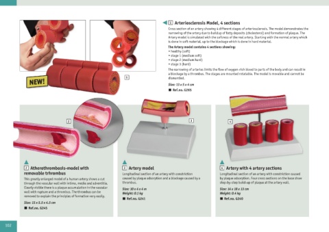 Cross section of an artery showing 4 different stages of arteriosclerosis. The model demonstrates the