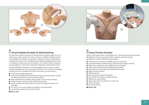 materials to create a realistic look, feel, and texture in addition to lifelike softness identification of cysts versus dense masses, while the right breast permits