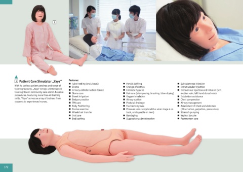 training features, „Yaye“ brings uninterrupted     n Urinary catheterization female    n Intimate hygiene            n Intravenous injection and infusion (left