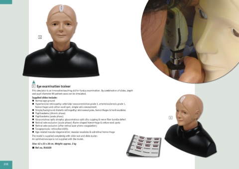This simulator is an innovative teaching aid for fundus examination. By combination of slides, depth