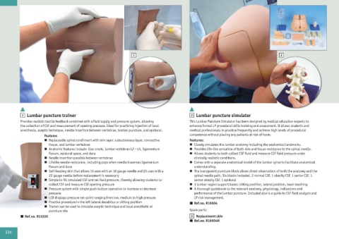 n Lifelike needle resistance, including pops when needle traverses ligamentum n Comes with a separate anatomical model of the lumbar spine to facilitate anatomical