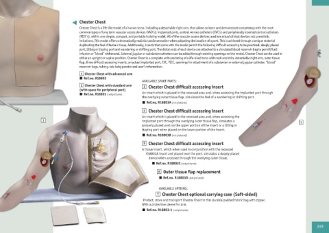flap, three difficult accessing inserts, an actual implanted port, CVC, PICC, openings for attachment of a subclavian or external jugular catheter, “blood”