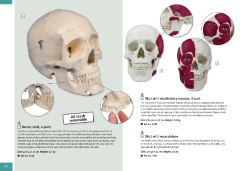 of teeth and an impacted third molar. The calvarium can be removed to allow the view into the on one half. The skull is similar to the article 4500, the mandible is unmovable. The