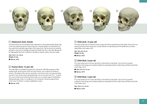 1 Adolescent skull, female 3 Child skull, 12 year old