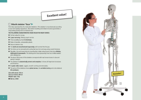 n The skeleton is anatomically correct and complete, it shows all important structures