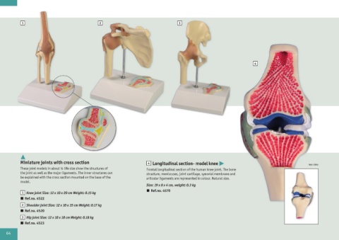 Miniature joints with cross section 4 Longitudinal section- model knee rear view