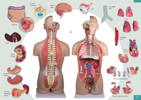 Thoracic vertebrae Half of Brain Bronchial Eye tree Lung Intestine 2 Esophagus, Aorta Liver Heart, 2-parts Half of Kidney Stomach, 2-parts Male urogenital systems Pancreas, Duodenum, Spleen Female urogenital systems 69