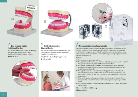 1 Oral hygiene model, 2 Oral hygiene model, 3 Transparent laryngopharynx model
