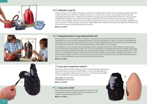 lungs, one section of dried swine lung, and a teacher’s guide. Replacement components can be purchased separately. Inflatable lungs